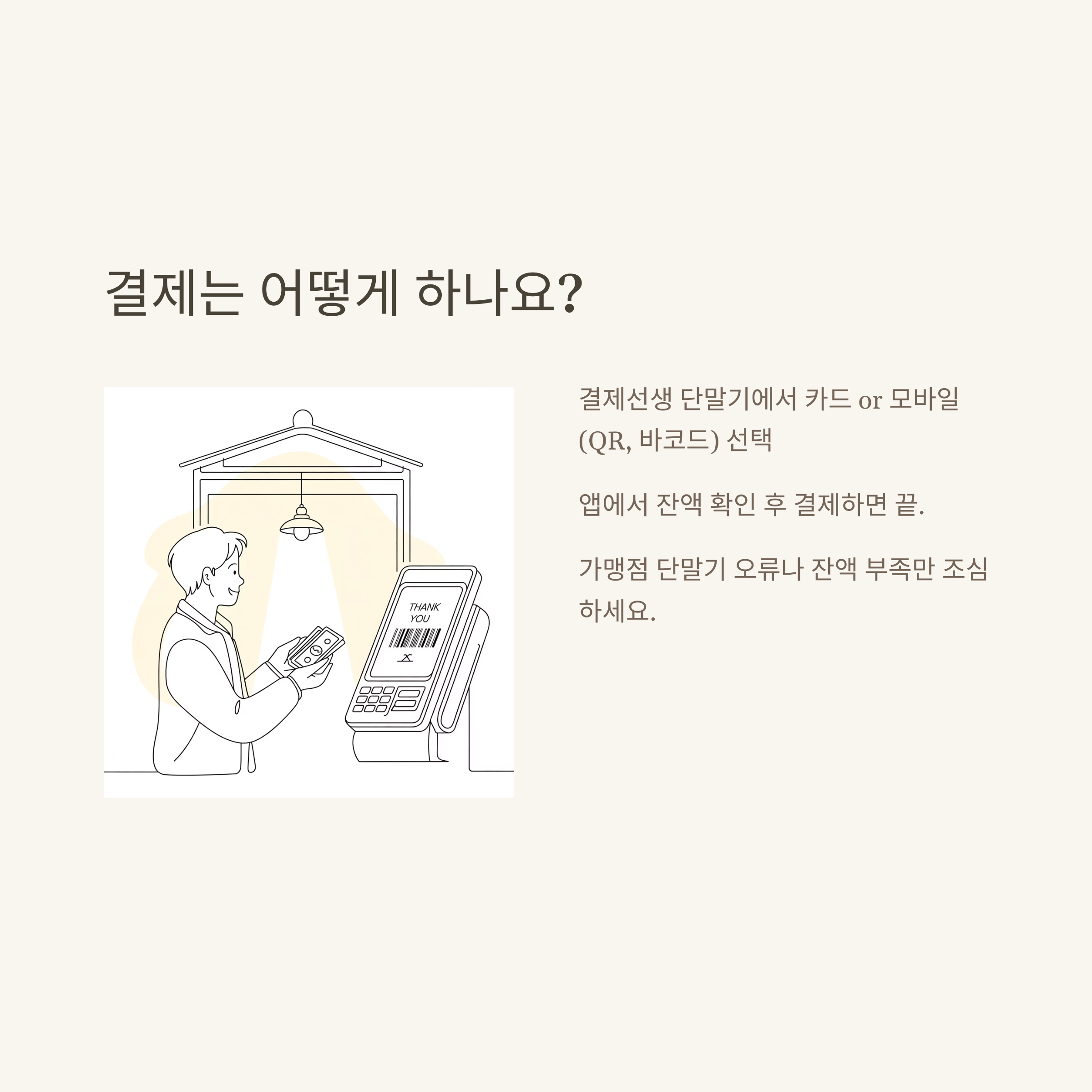 - 해당 지역 내에서만 결제 가능(지역 이동 시 사용 불가)