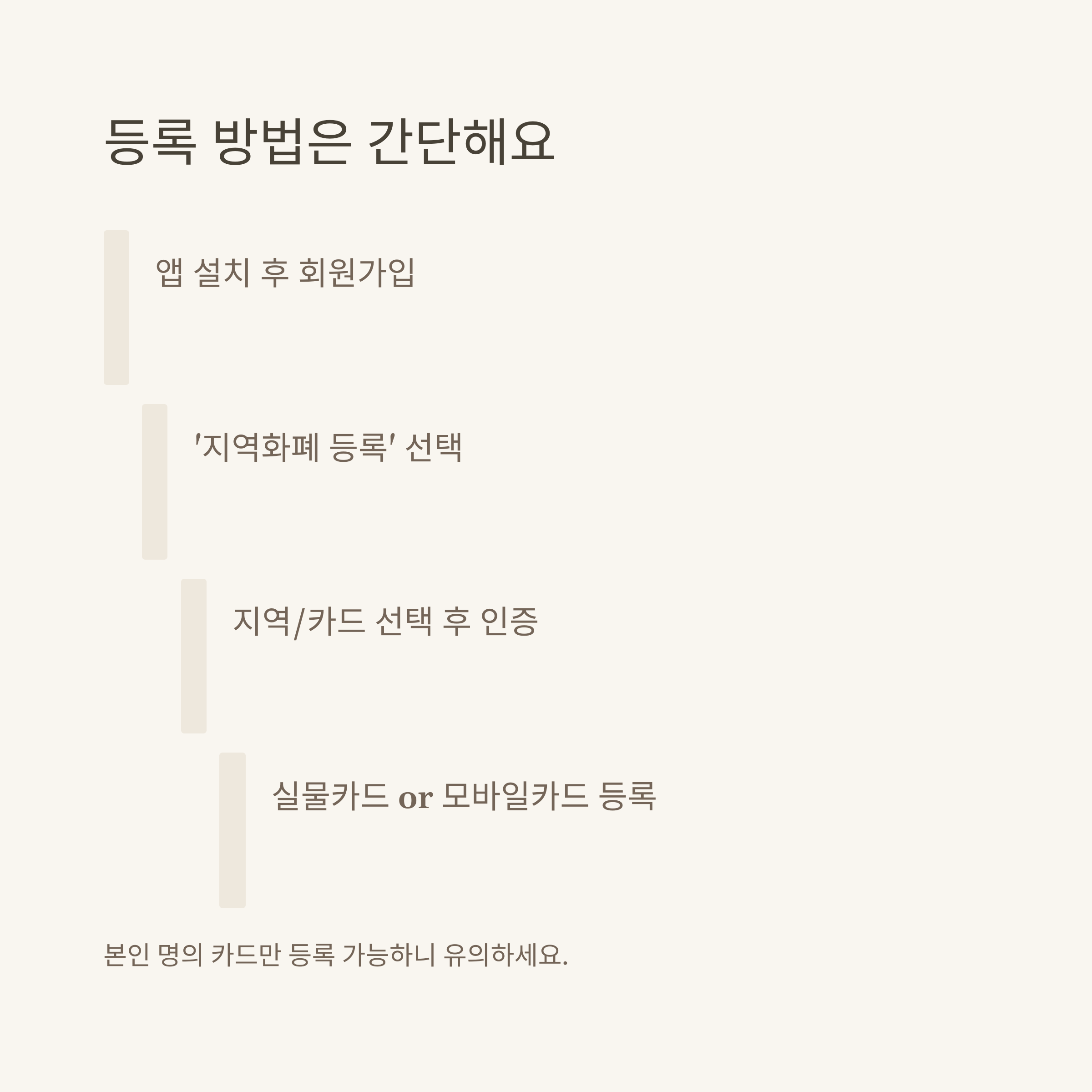 | 실물카드 등록 | 오프라인 충전·사용 가능 | 카드번호·주민번호 입력 필요 |