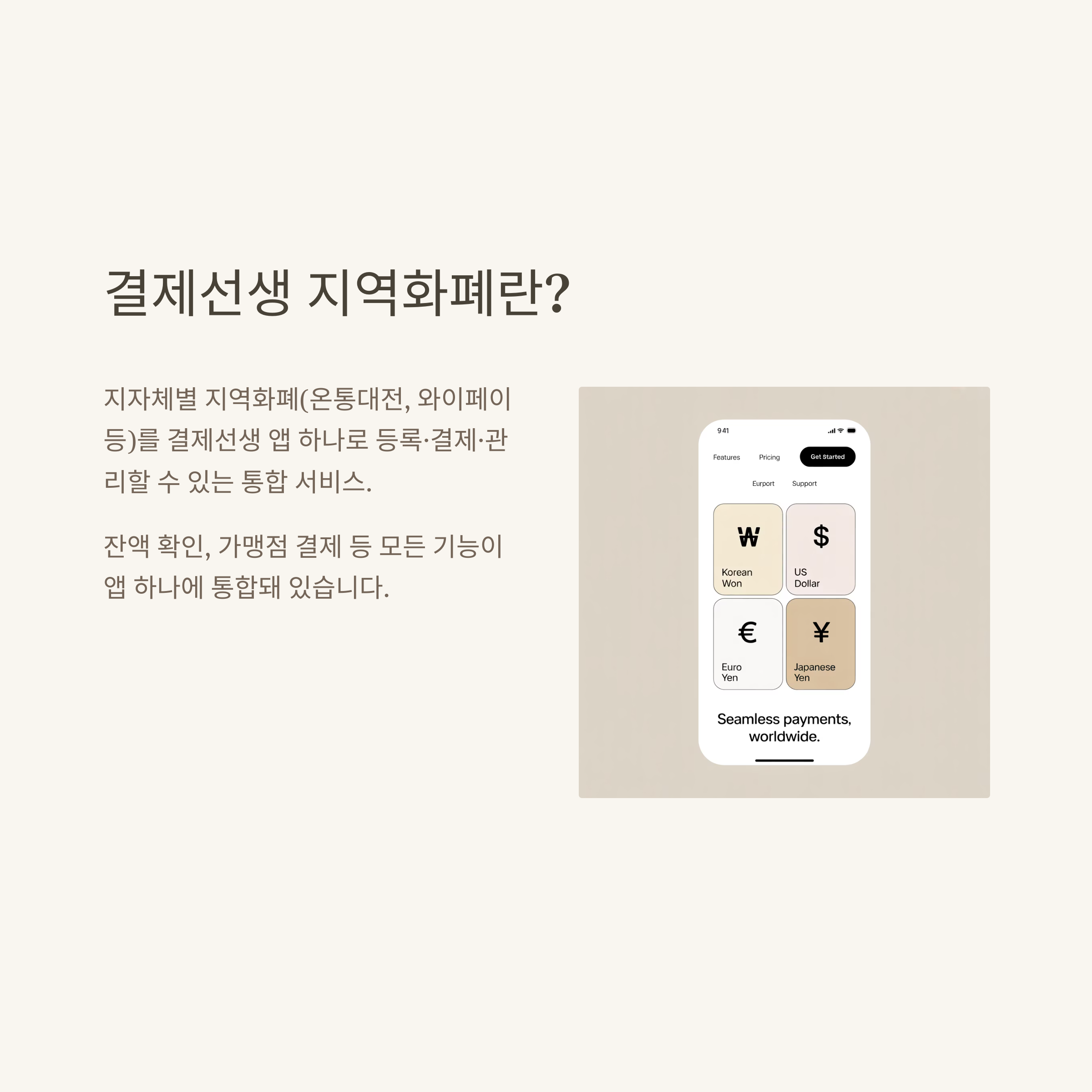 | 관리 편의성 | 여러 지역화폐 동시 관리 | 잔액 및 내역 실시간 확인 |