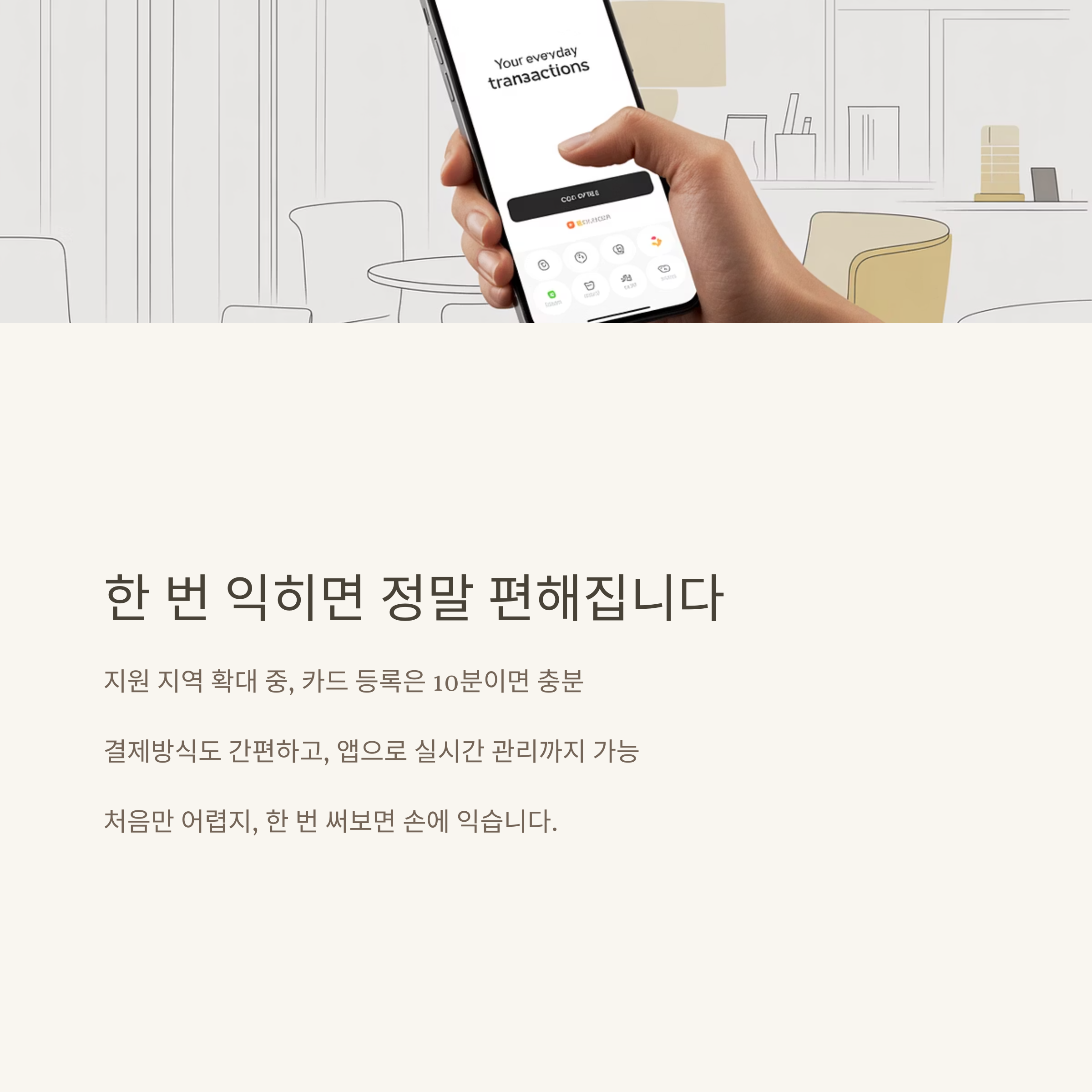 | 카드 결제 | 가장 직관적, 어디서나 사용 가능 | 카드 분실 시 바로 차단 필요 |