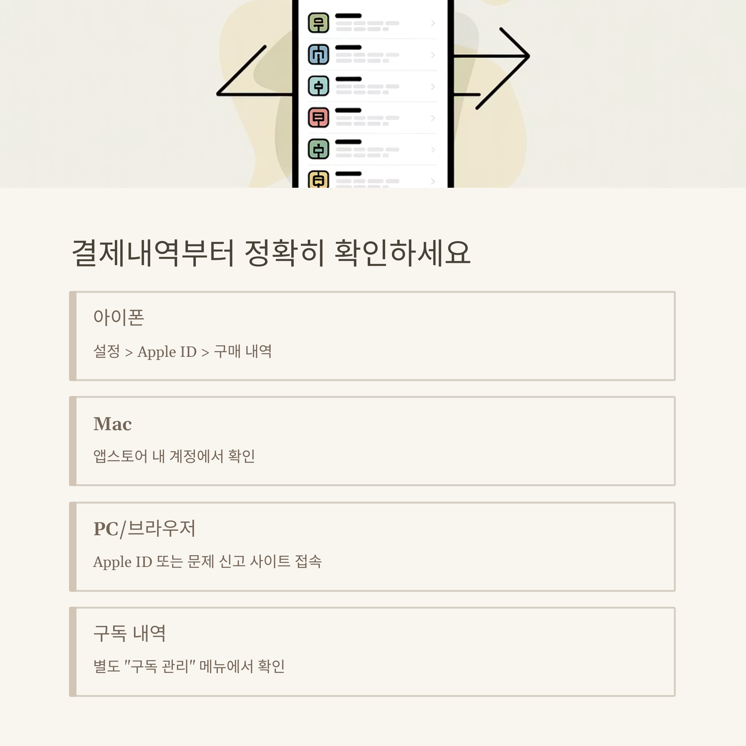 공식 안내 페이지는 애플 결제내역 확인 가이드에서 더 자세히 볼 수 있습니다. 각 경로마다 화면 구성이 조금씩 다르니, 실제 사용하는 기기 기준으로 꼭 한번 확인해보세요.