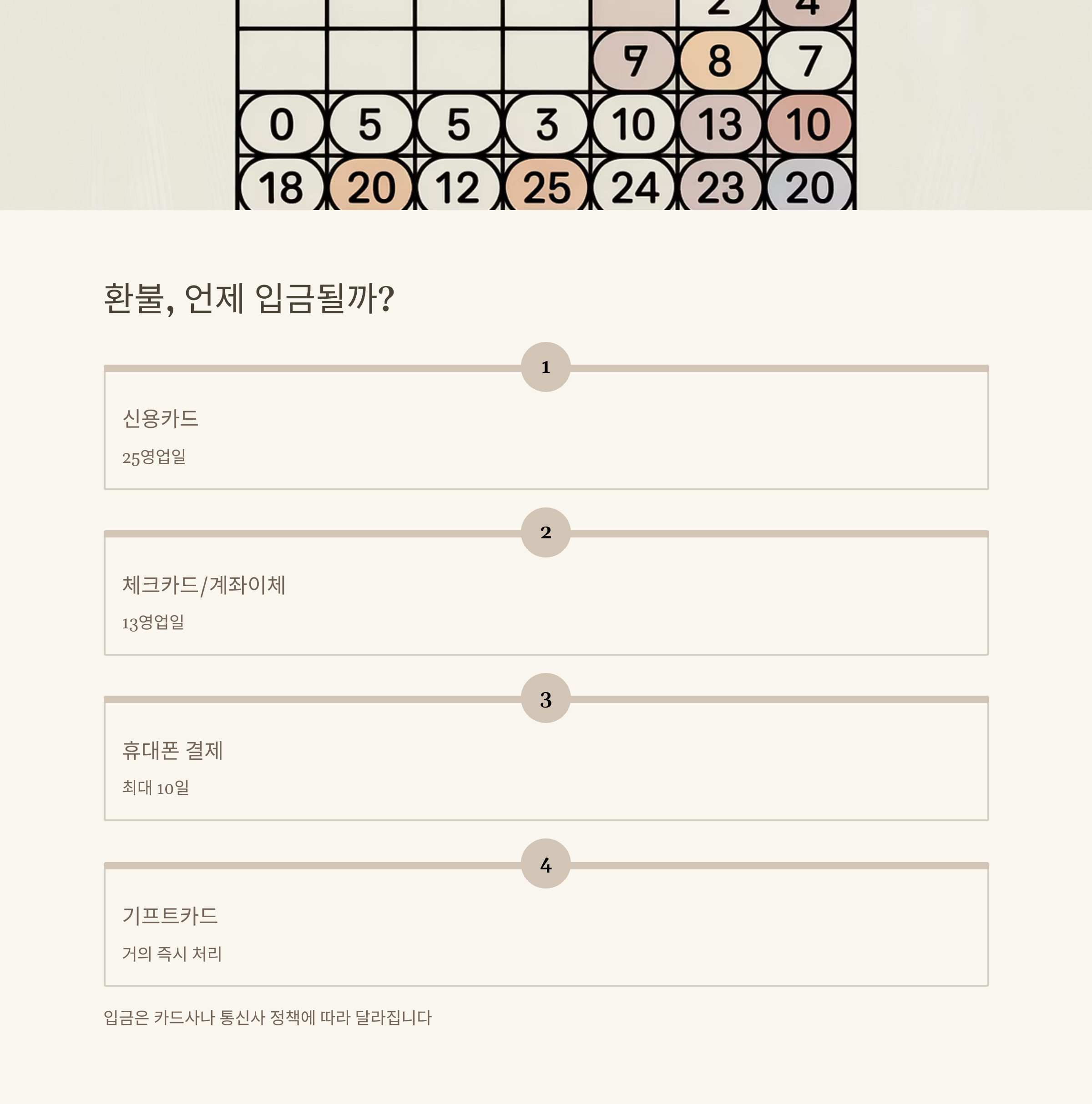 | 결제 수단 | 환불 소요 시간 | 특이사항 |